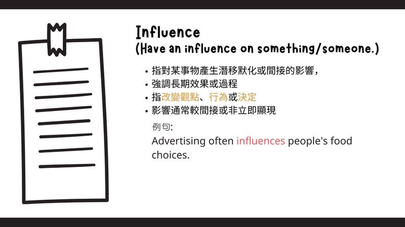 在課程中常發現:當學生想要在句子中使用「影響」這個詞彙時,往往不知道要使用Affect者是Influence